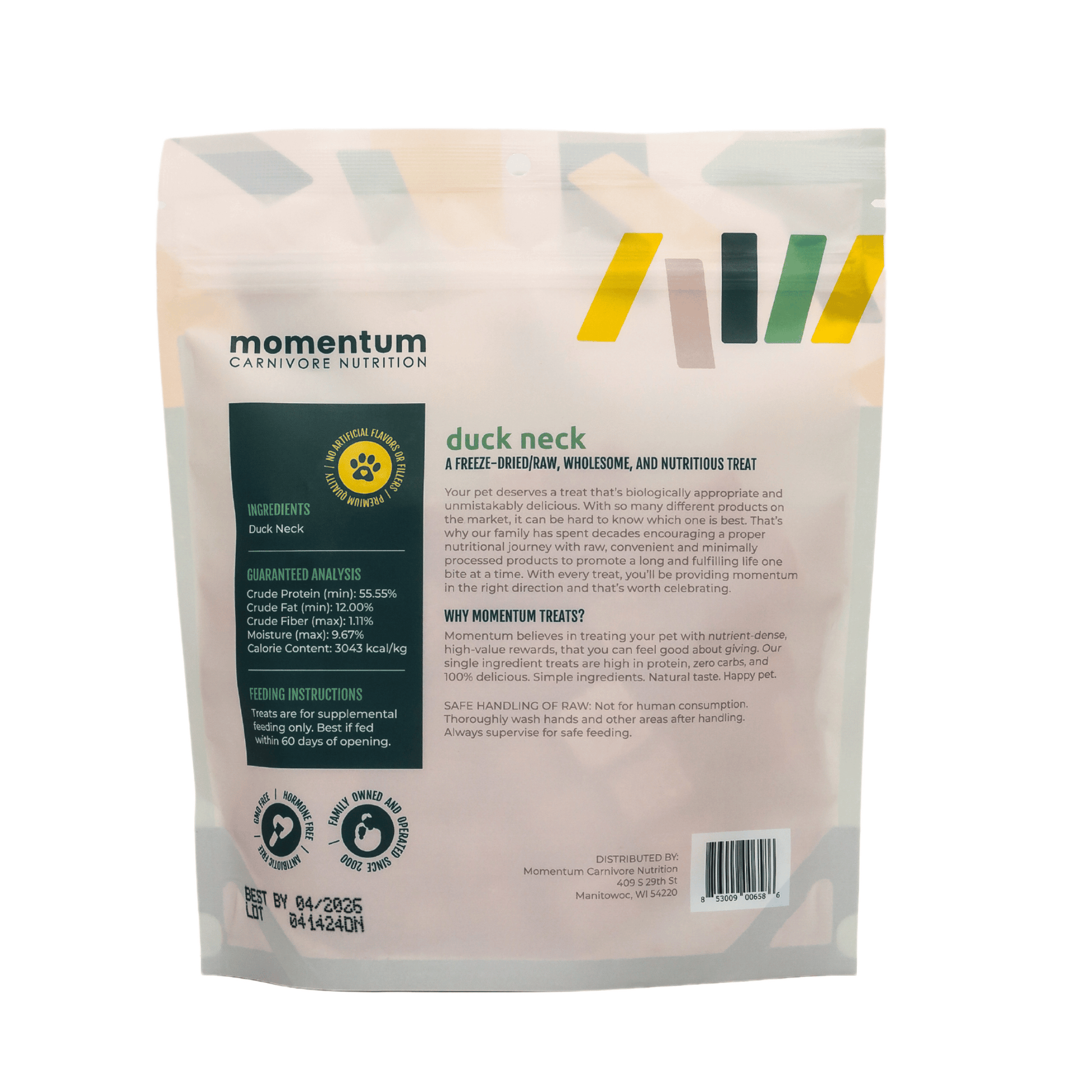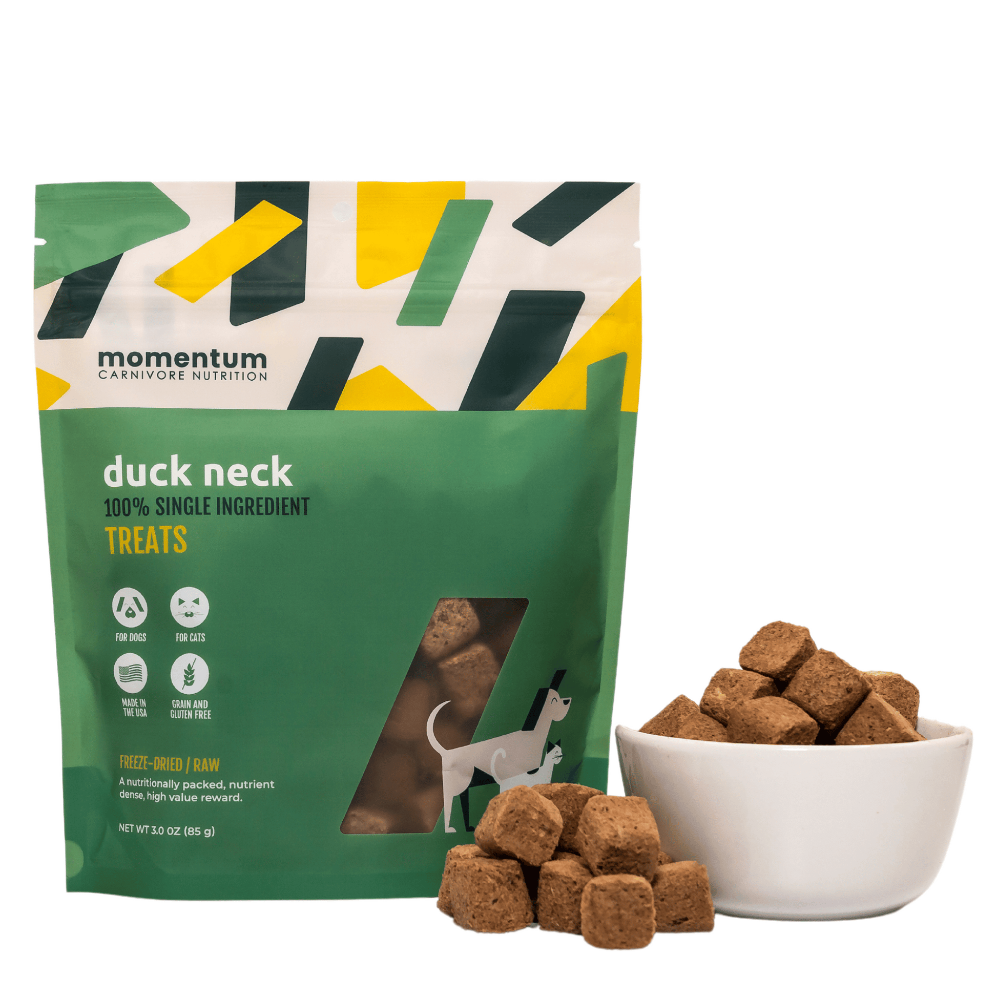 Treat your pet to the wholesome goodness of Momentum Carnivore Nutrition Freeze-Dried Duck Neck Chews. Made from 100% pure duck necks, these treats offer a natural source of protein, essential nutrients, and dental benefits, making them a healthy and satisfying snack for your dog or cat.