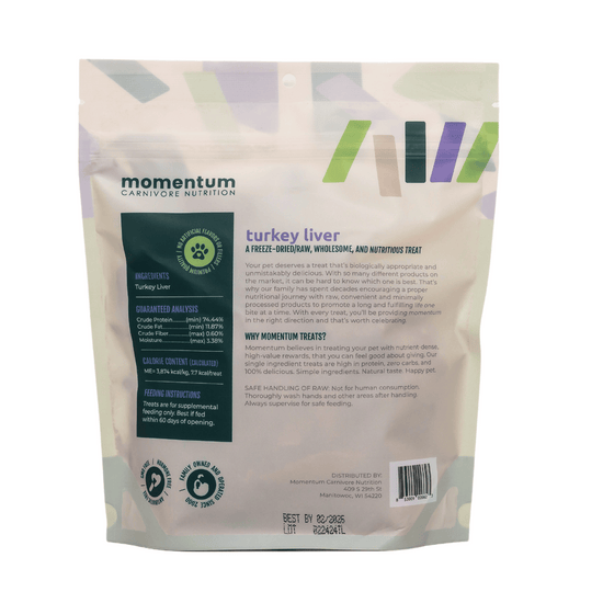 Indulge your pet with the rich, nutrient-packed goodness of Momentum Carnivore Nutrition Freeze-Dried Turkey Liver Treats. Made from 100% pure turkey liver, these treats provide a high-quality source of lean protein and essential nutrients, offering a healthy and flavorful snack that supports your dog or cat’s overall well-being.